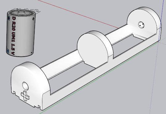 Pour ne pas que les piles coincent dans la partie cylindrique, il faut que les piles reposent presque dans la fente entre les deux parties des logements de batteries, d’où la nécessité d’évider le dessous du support.