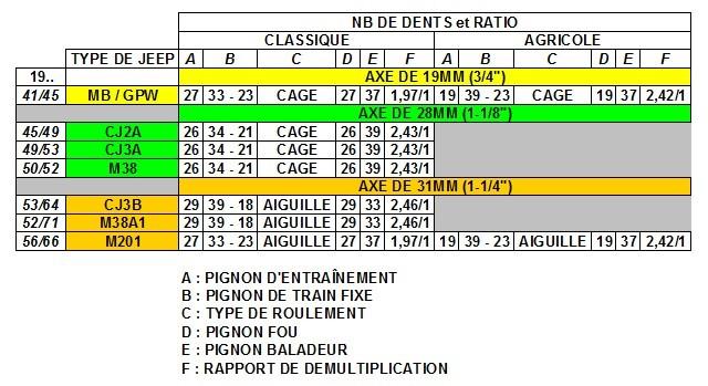 On s’aperçois que la CJ3b et la M38 ont une démultiplication très proche de la boite agricole du tableau, mais j’ai l’impression que la boite présentée plus haut est différente, avec une démultiplication encore plus grande