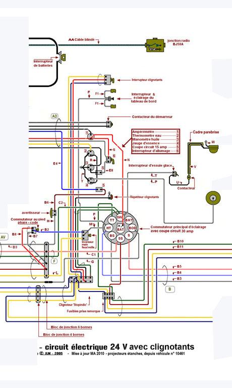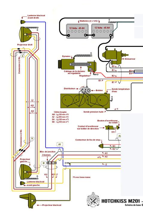 Petit bémol. Sur ce plan en couleur, pas de tracé du circuit des clignotants. IL semblerait que l’armée française ne raffolait pas des indicateurs de changements de direction.