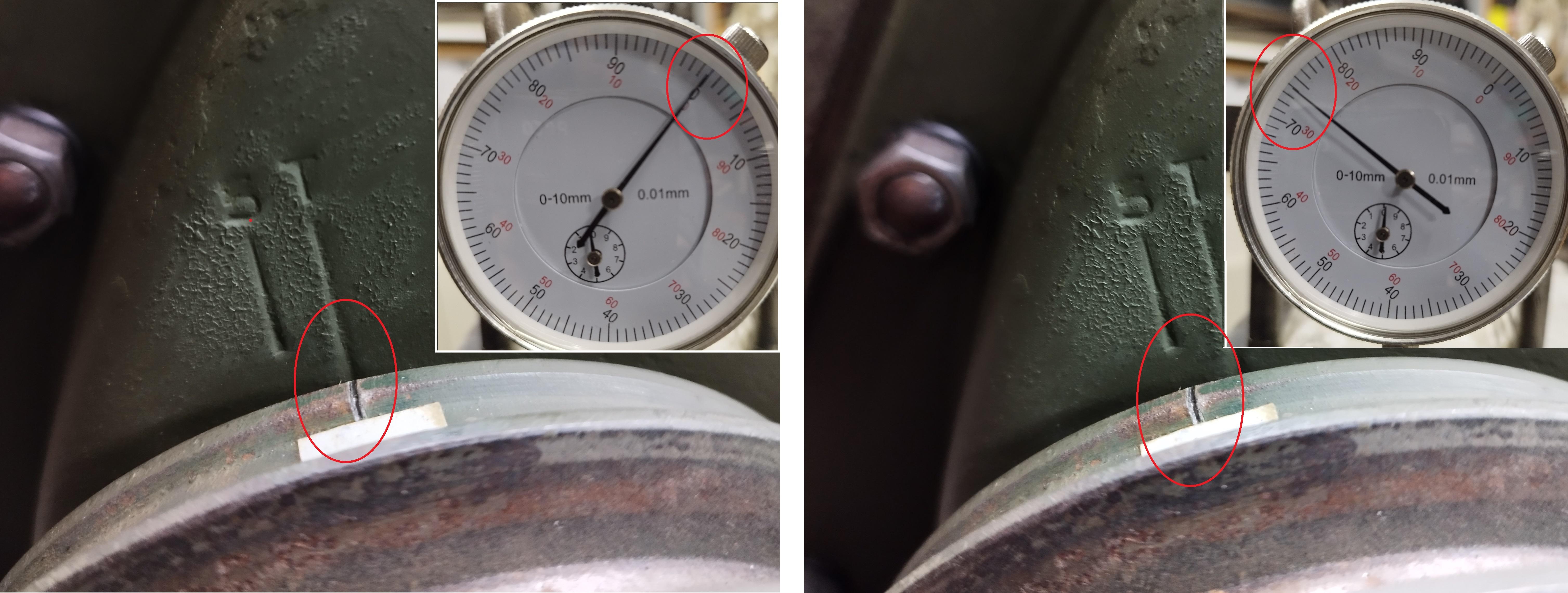 2Je vais vérifier au comparateur et voir si le repère 5° est bien placé sur le volant moteur.