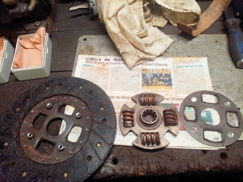 Lors de notre dernière sortie en Jeep, Michel a cassé son embrayage … La plaque du moyeu à cassée en 3 points.