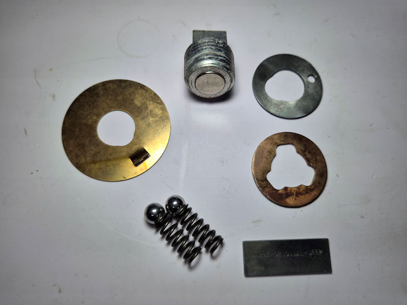 Les rondelles d’épaisseur, les ressorts et billes, la plaquette d’arrêt des arbres, le bouchon de vidange magnétique.