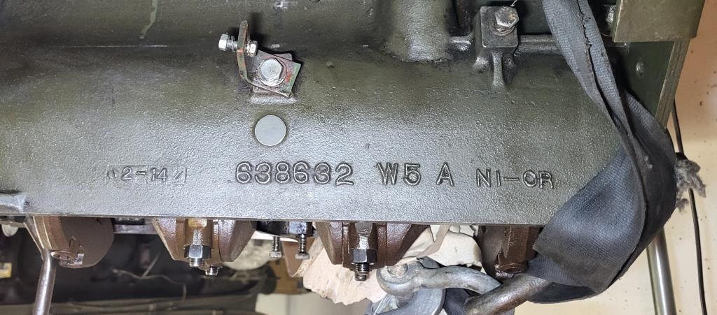 Le moteur a été refait en 1963 chez un sous traitant de l’armée. J’avais pensé qu’un surfaçage ai pu effacer la date, mais la présence des autres chiffres bien frappés profondeur semble exclure cette hypothèse.