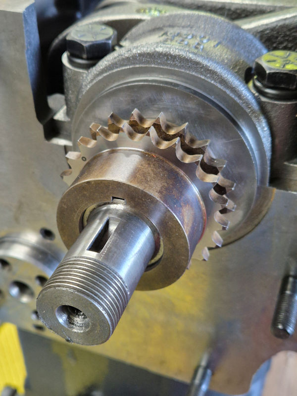 Mise en place du pignon de vilebrequin et du défleceur d’huile.
