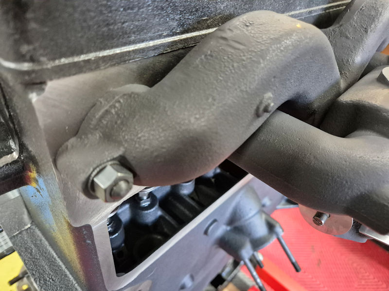 Je peux maintenant serrer les 4 vis de fixation des deux collecteurs. Losque je monterai les collecteurs de façon définitive sur le bloc-cylindre avec le joint, je suis certain d’obtenir une étanchéité parfaite !