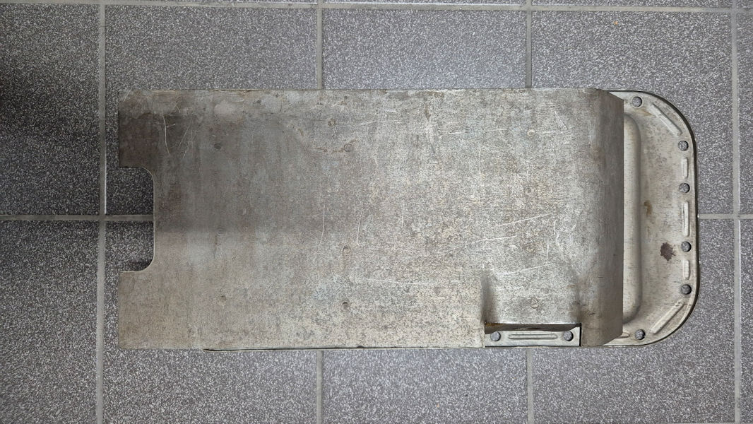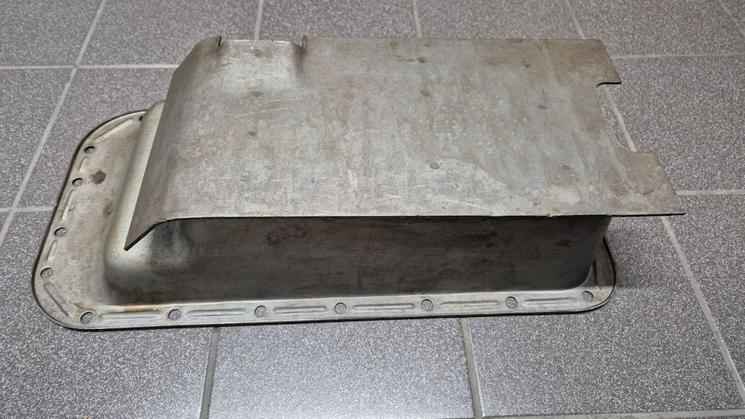 Je dois avoir ça en magasin … Rayon “A”, étagère N°2 … Un beau carter d’huile N.O.S. ! Le problème, il va falloir enlever la couche de goudron qu’il y a dessus !