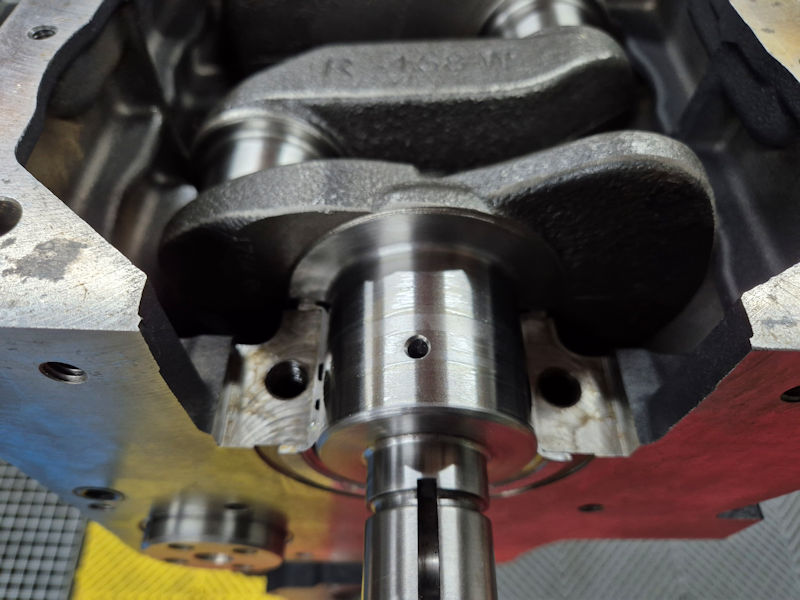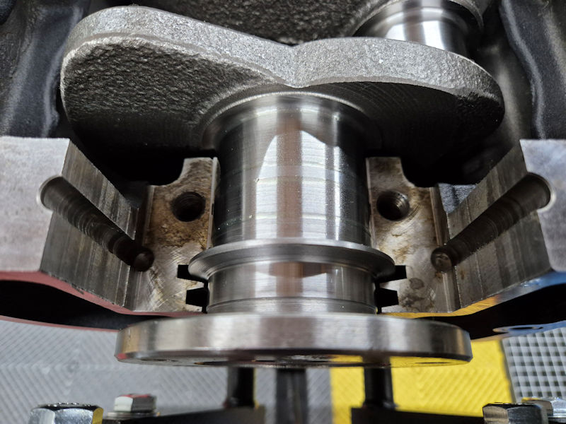 Je vais maintenant faire un montage à blanc du vilebrequin dans le bloc-cylindres afin de vérifier que tout est OK.