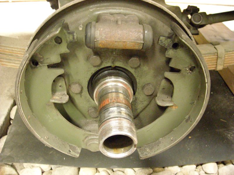 Desserrage des roues, dépose du demi-arbre de roue, dépose du moyeu … Et voici l’état du cylindre de roue et des mâchoires.
