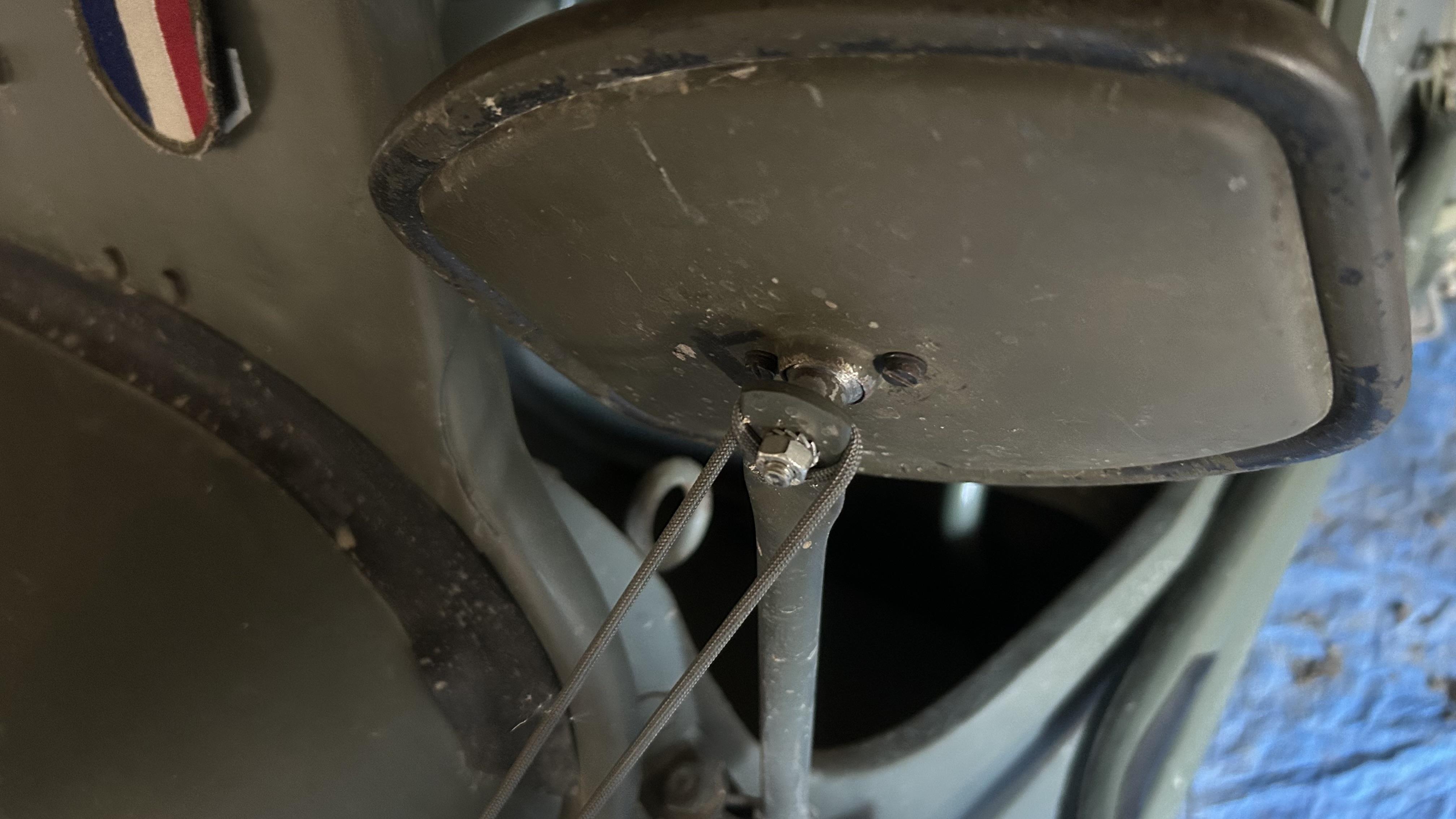 Pour limiter les vibrations en bout de bras j’ai tendu un morceau de cordelette entre le bras et la carrosserie, cela améliore un peu la tenue mais pas suffisamment et je suis obligé de le régler sans arrêt en roulant.