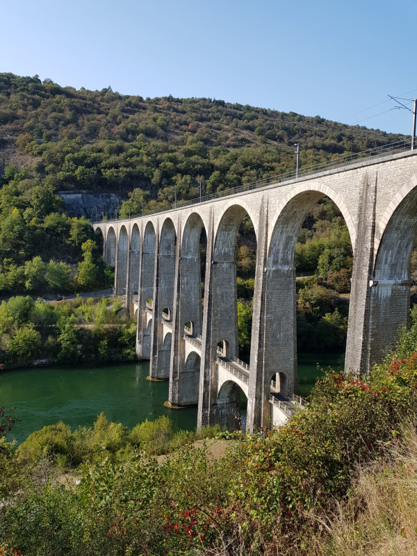 Bonjour,Nous longeons maintenant la Rivière d’Ain jusqu’au viaduc de Cize-Bolozon