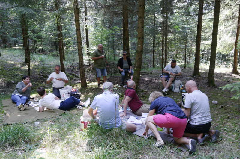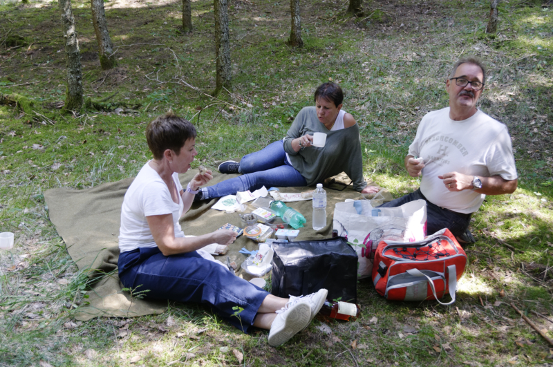 Le Lac Genin est encore loin et il est déjà plus de midi ! Nous décidons de repartir et nous nous arrêterons dans les bois pour le casse-croûte.