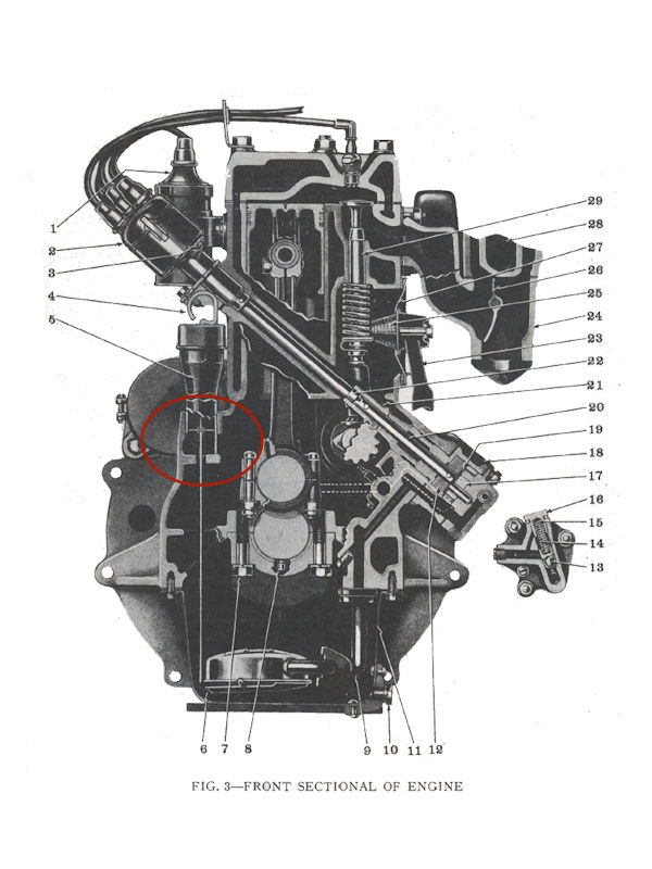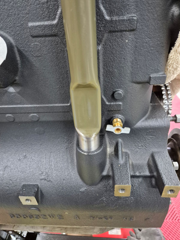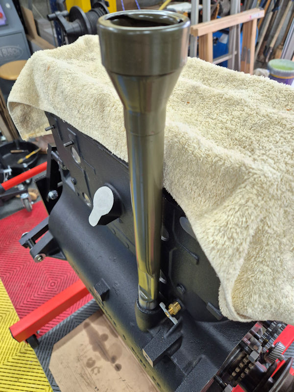 La distance entre le haut du tube de remplissage d’huile et le rebord de l’alésage dans le bloc-cylindres doit être de 14 1/4″ soit 36,2 cm.