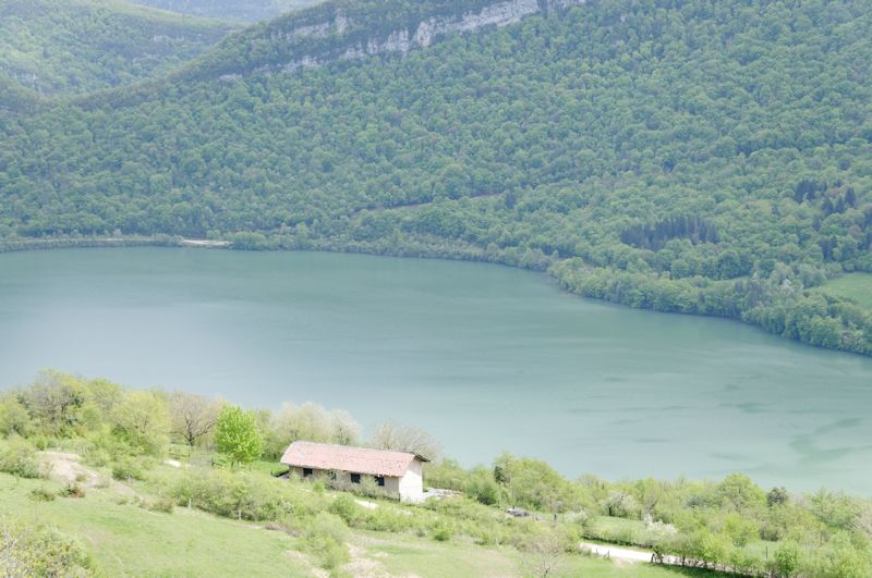 Un arrêt au-dessus du lac de la retenue de Coiselet.