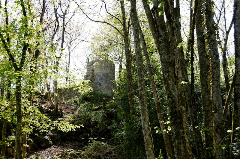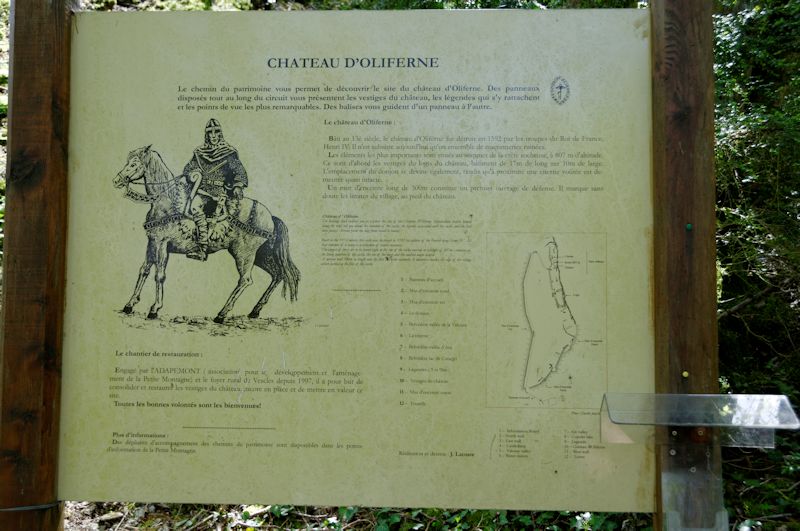 MAIS, car il y a un “MAIS” Je n’aime pas abandonner ma Jeep, seule, en plein bois, à la merci des bandits de grands chemins … Heureusement, Christian se dévoue pour monter la garde ! OUF !!! 😉Une petite marche forcée sur le site du chateau d’Oliferne.