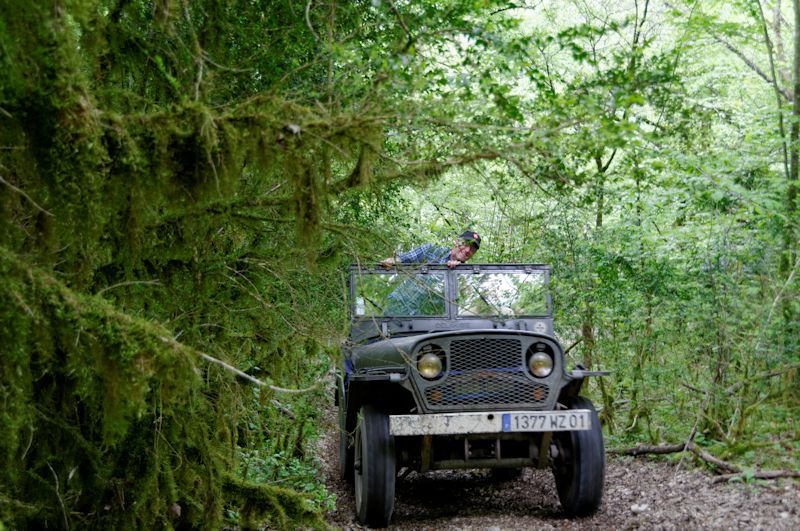 Pas question de redescendre jusqu’en bas, on attend … Si nécessaire, on rejoindra la route par le haut. Après une longue attente, on entend le moteur de la Delahaye …