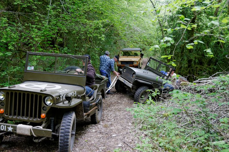 J’arrive au raccourci, Les jeeps de Michel, Christian et René sont là, ça discute, Mais il manque Denis et Serge … La Delahaye ! On appelle, on les entend crier ! Mais pas d’info sur le problème …
