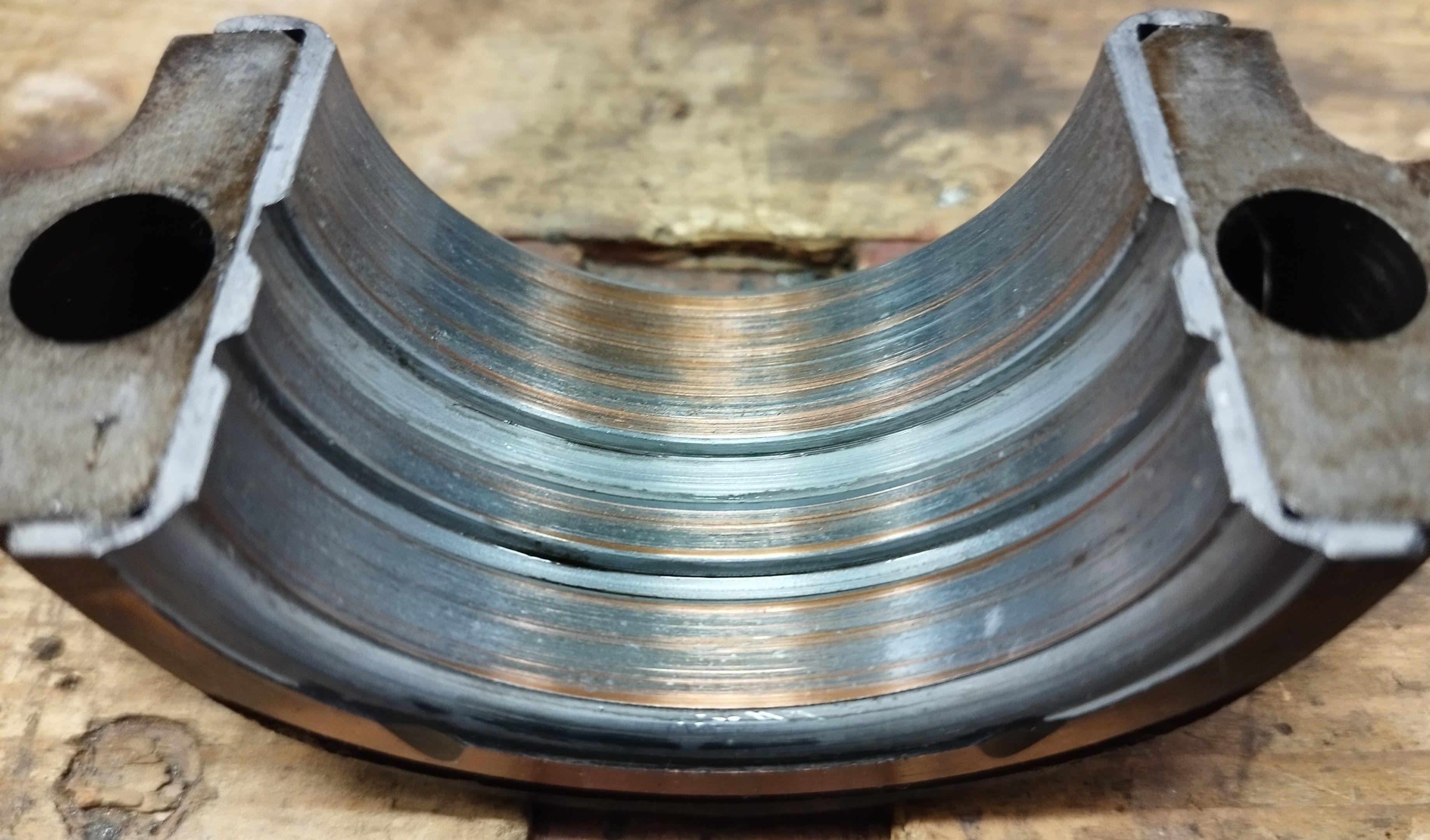 Les coussinets ont labouré vb. Il y a des sillons énormes sur tous les tourillons et les manetons.