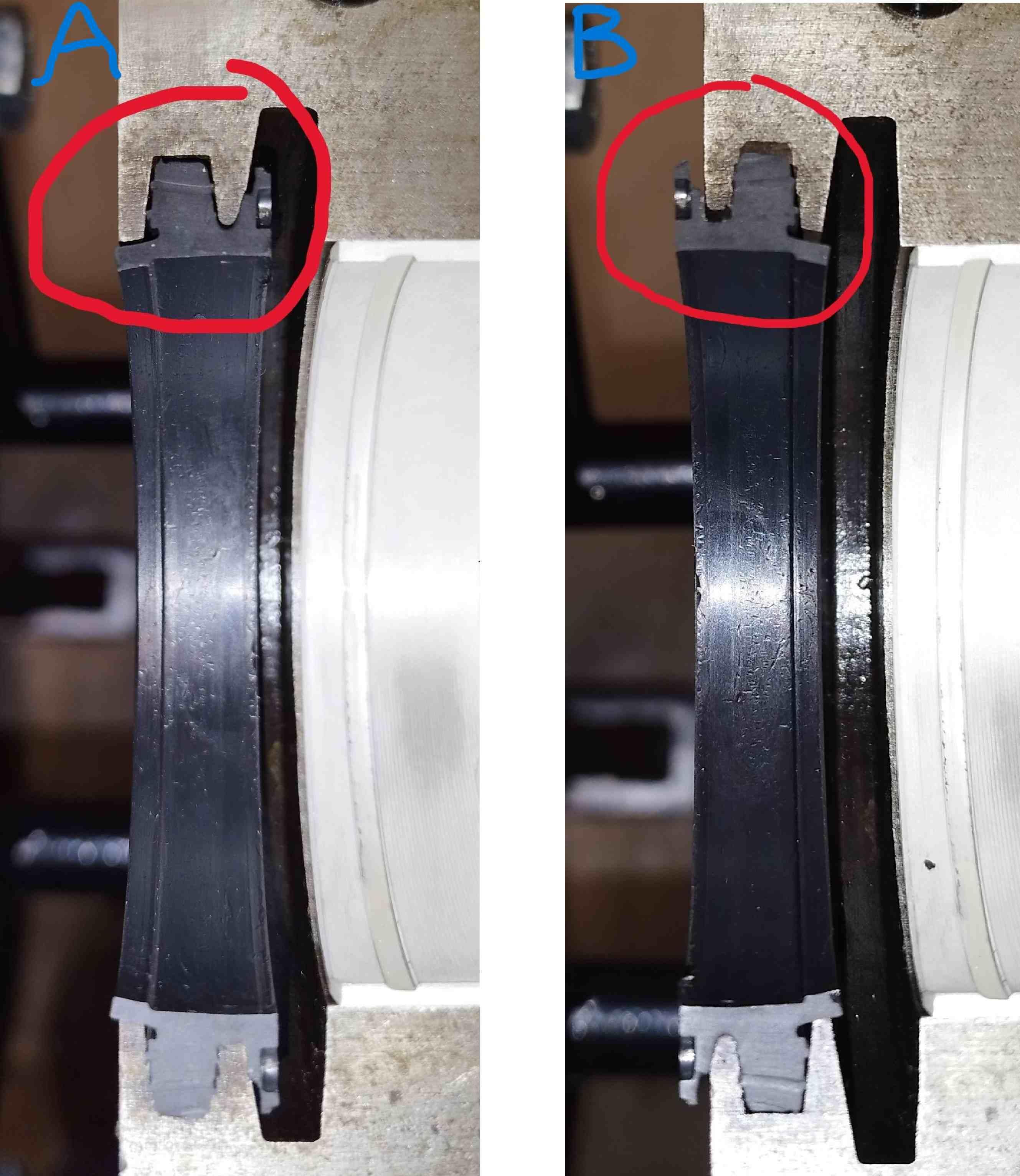 Le joint doit être posé comme la figure B, avec cerclage métallique à l’extérieur.