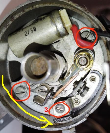 En voulant changer le condensateur du delco, la petite vis est tombée au fond de l’allumeur.