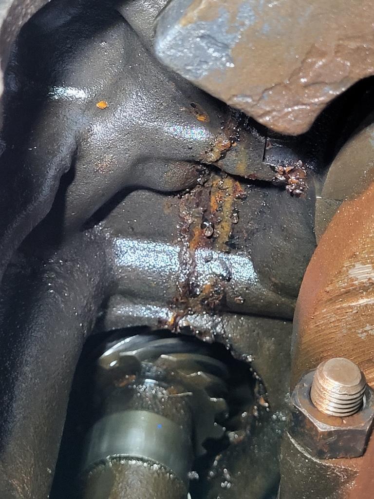 A l’intérieur, quelque chose a coulé (LDR ?) sur l’arbre à came et forme quelques concrétions
