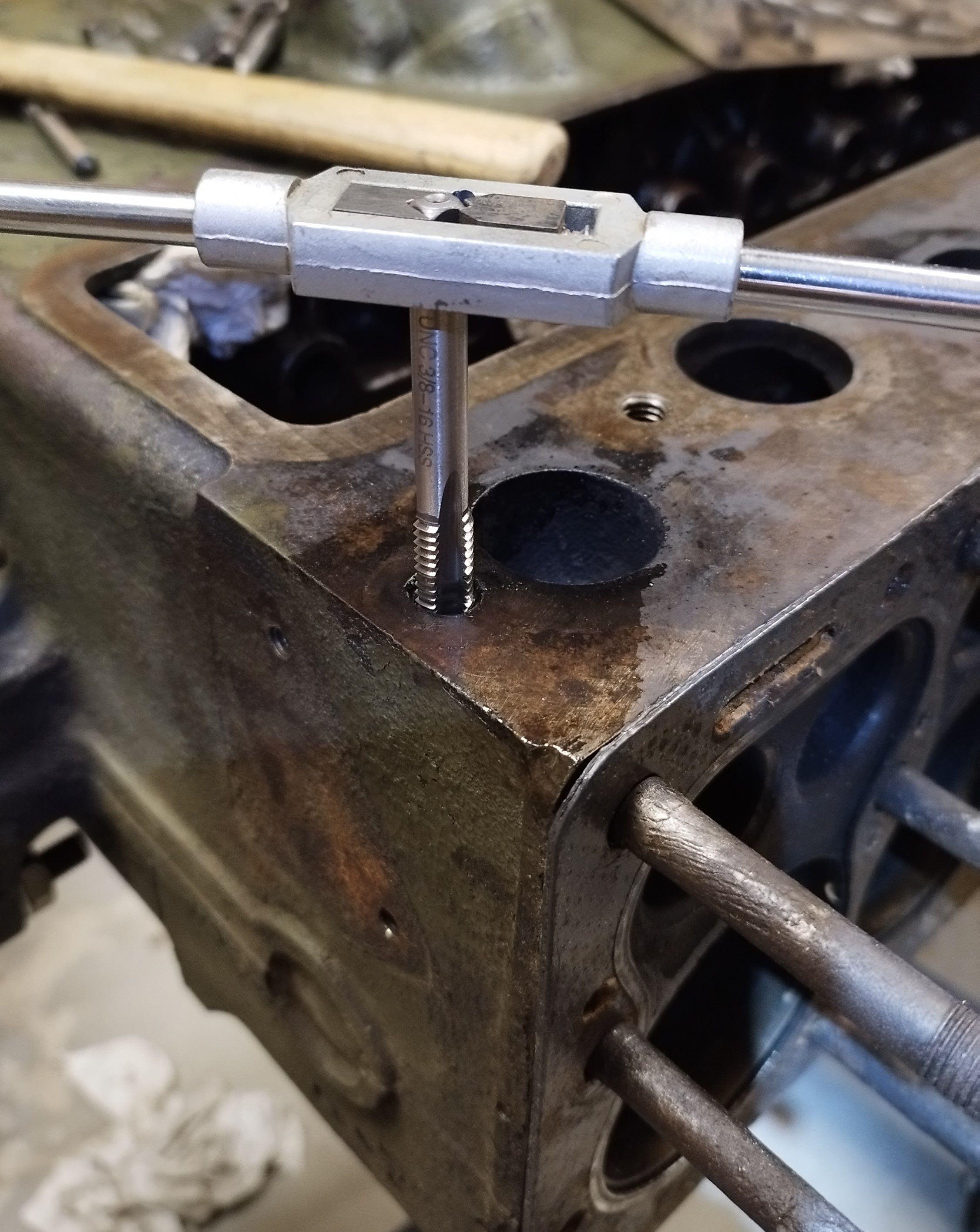 Solution final. Je sort les tarauds UNC 3/8. Dans le stress, je n’ai pas fait de photo. j’ai utilisé le même guide foret pour démarrer le tarauds pour rester perpendiculaire.