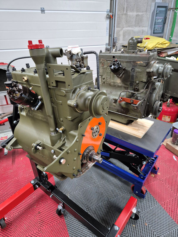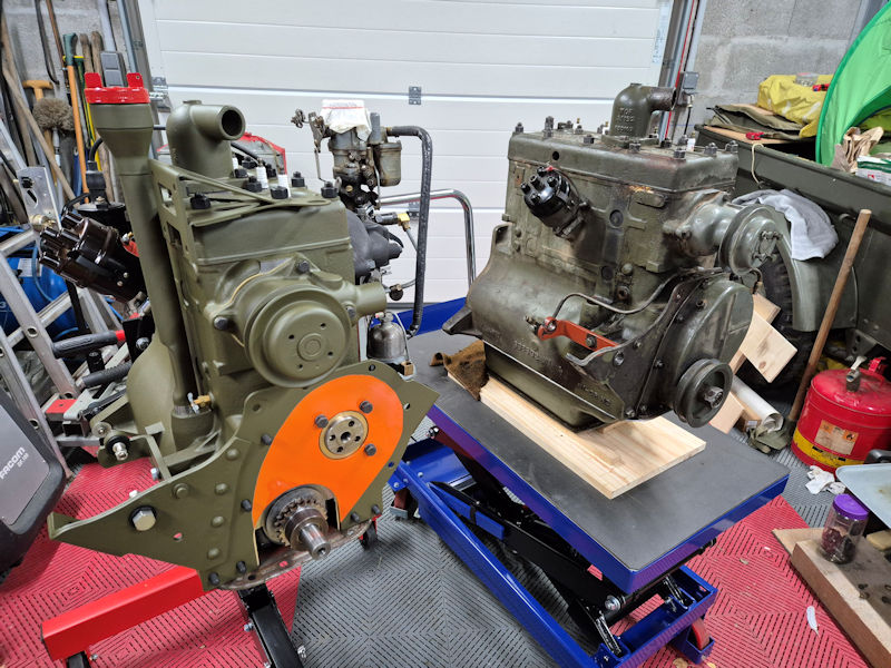 Le moteur neuf et l’ancien sur leurs supports.