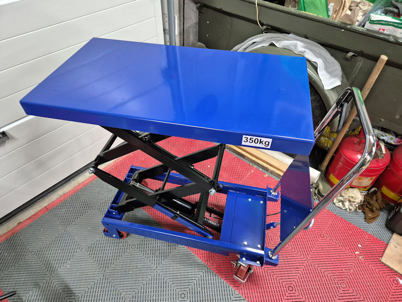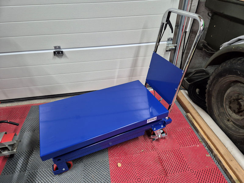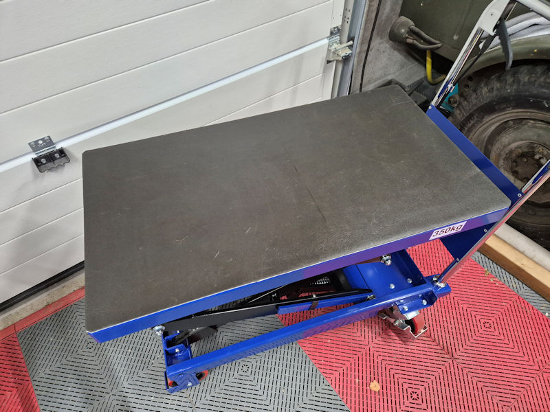 Ce qui me permettra de déplacer tout ce qui attrait au jardinage ! Tracteur, broyeur, tondeuse …En attendant, j’ai posé une mousse de protection sur la table élévatrice !